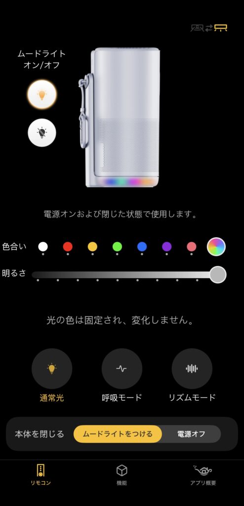お部屋ライトやBluetoothスピーカーとしても使える万能ぶり。