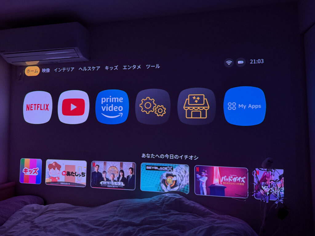- 天井に投影して寝ながら鑑賞したい