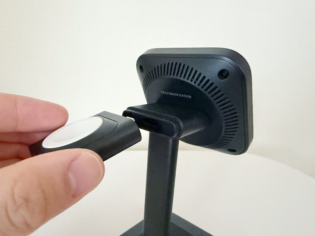 まずはApple Watch充電器を背面に取り付けます。