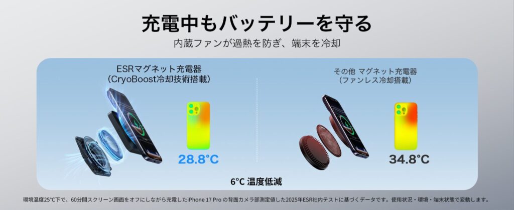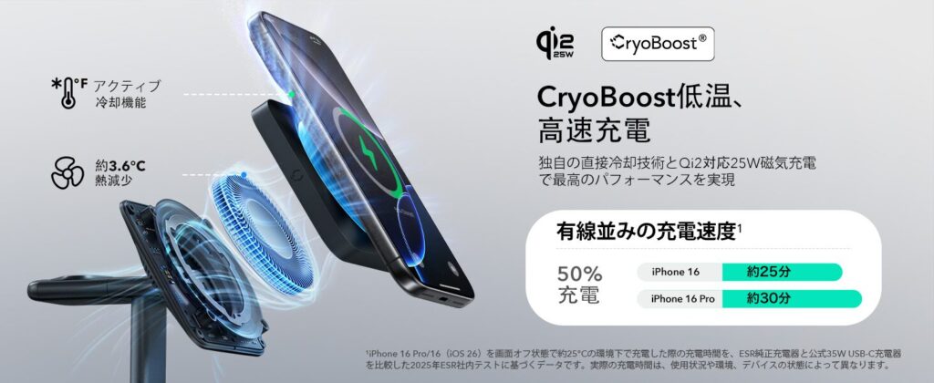 CryoBoost®技術で充電時の熱を抑えてくれる