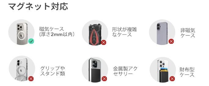 厚さ2mm以内の磁気ケース以外は